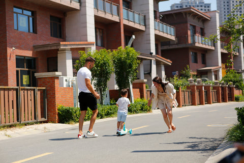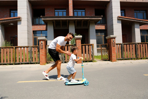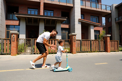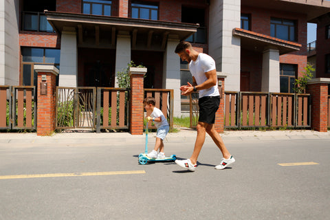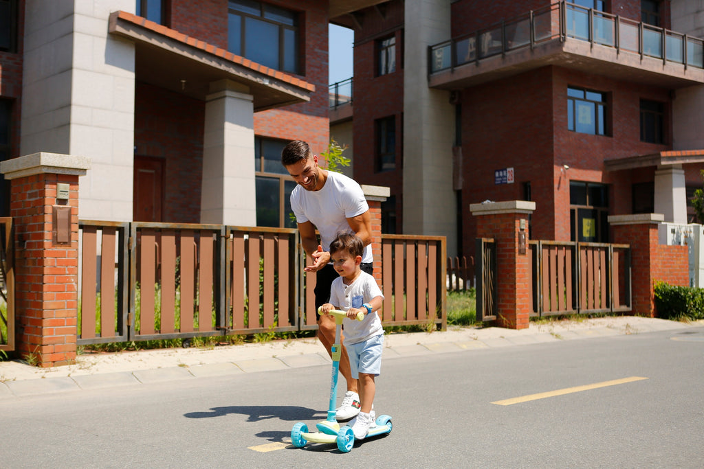 • Wheels: Tri-wheel design stabilizes the scooter. Wheels are made of high-quality PU and light up when in use. Perfect for both sidewalks and pavement