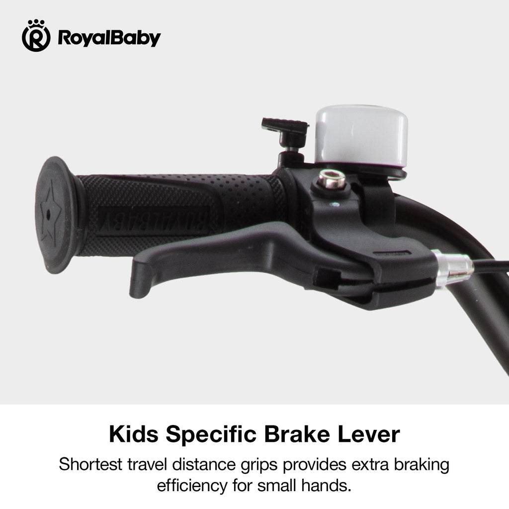 Safety is the most important aspect for RoyalBaby and characterizes all aspects of the bicycle: child-oriented brake levers with short reach for small hands, above-average width tires for comfort and stable riding, doubly-safe, 2 hand brakes, a front caliper brake and rear band brake. While the high safety standards make parents happy & assured.
