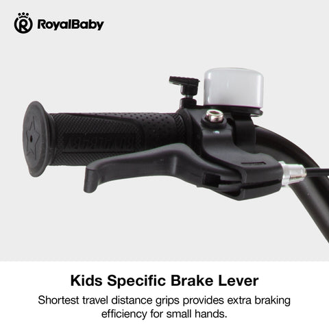 RoyalBaby kid’s bikes are ideally prepared for the lovely little ones’ specific requirements. RoyalBaby bikes were designed with style in mind. The details are what set this bike apart. The stars on the grips, custom RoyalBaby tire tread and the functional yet unique training wheels. All combined these features make up one cool bike.